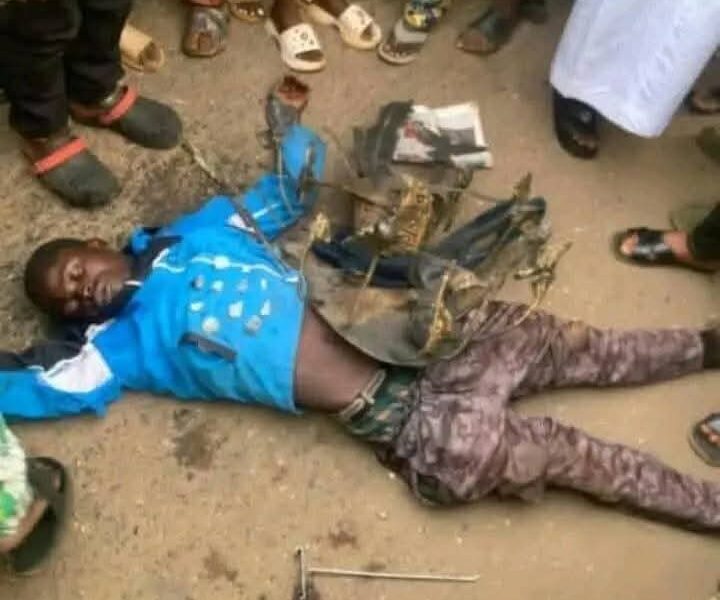 A suspected thief, identified as Jeremiah Kosesochi Nwoke has reportedly d!ed while attempting to cart away the Agemo statue located at the Itoro Roundabout in Ijebu...